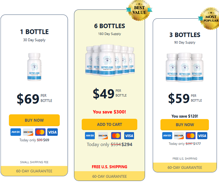 If you’re committed to supporting clear vision, boosting visual acuity, and improving long-term eye wellness, be sure to order Reticlear only through the Official Website.